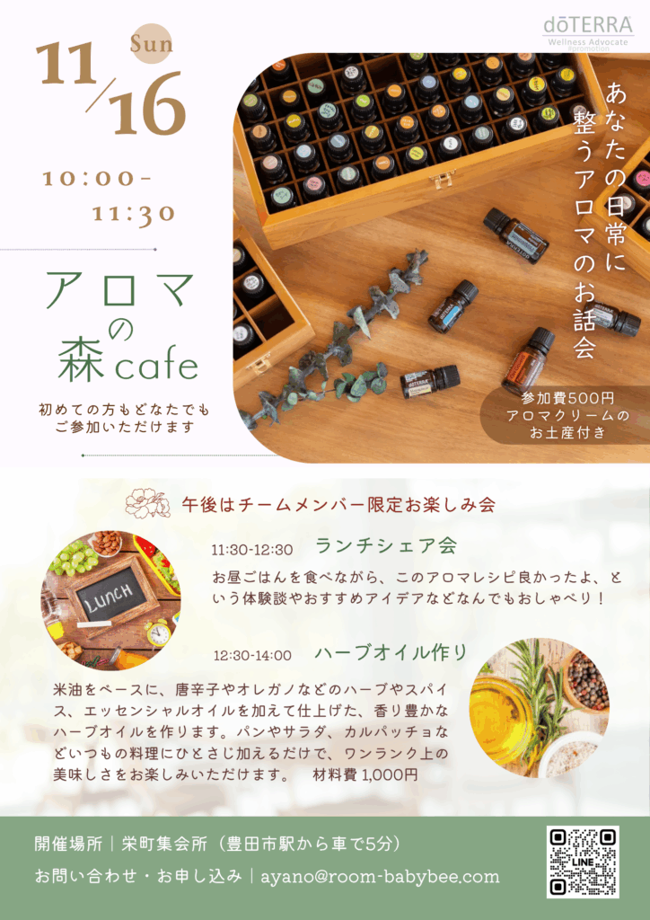 ●11月16日(日) 10:00~ 豊田市栄町 アロマの森カフェ